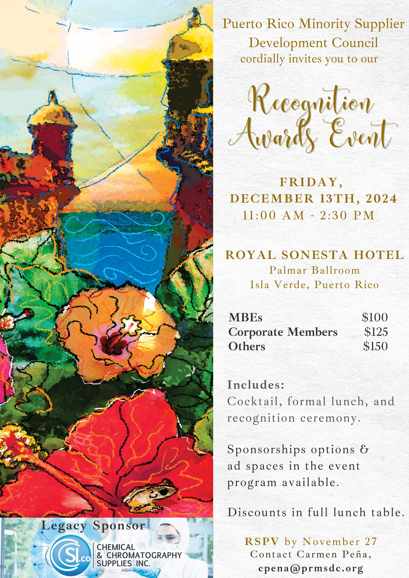 Puerto Rico Minority Supplier Development Council cordially invites you to our Recognition Awards Event. This includes a cocktail, formal lunch, and a recognition ceremony.
